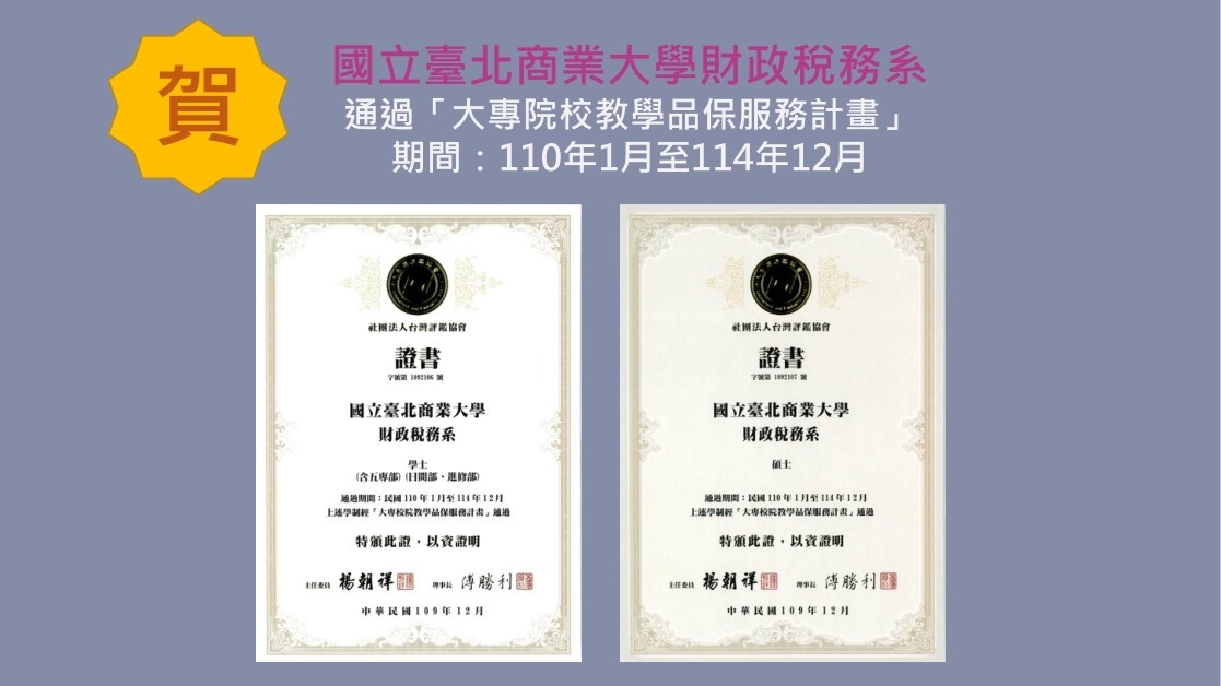 Congratulations~ Our department has passed the "Teaching Quality Assurance Service Plan for Colleges and Universities"